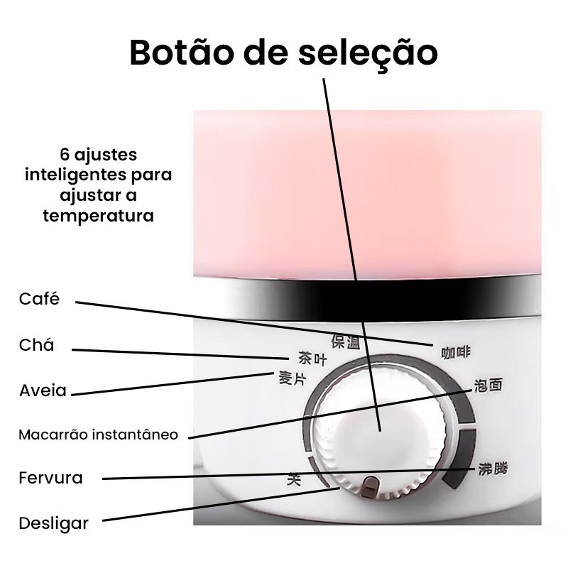 Feita com materiais de alta qualidade, como silicone de grau alimentício e aço inox, nossa Chaleira elétrica dobrável portátil é segura e resistente. Ferva a água em poucos minutos com apenas um toque, graças ao seu botão intuitivo. E não se preocupe com acidentes, pois ela possui proteção contra superaquecimento e desligamento automático.