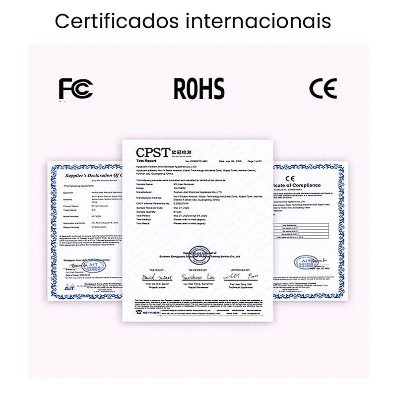 Certificados Internacionais e nacional: CE, ROHS e FC
