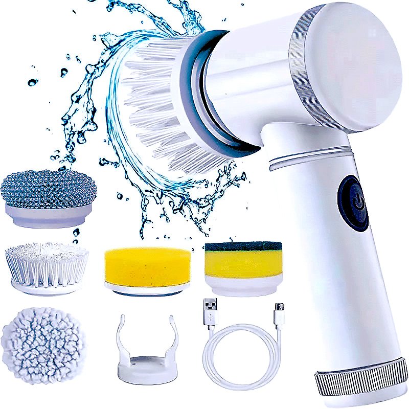 Facilite sua vida e deixe sua casa impecável com o Esfregão elétrico sem fio com 5 escova substituíveis carregamento USB! Limpeza profunda e eficiente. Com 5 diferentes tipos de cerdas, essa escova é perfeita para limpar diversas superfícies, como louças, azulejos, panelas e muito mais. Leve e portátil, ideal para limpar qualquer lugar da casa. Remove sujeiras incrustadas com facilidade, economizando seu tempo e esforço.