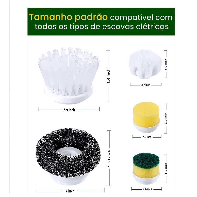 A rotação ajustável de 350 rpm produz um toque poderoso, que pode limpar rapidamente manchas difíceis. Acompanha 5 cabeças de escova que se adapta a limpeza de vários utensílios e que podem ser substituídas a qualquer momento.