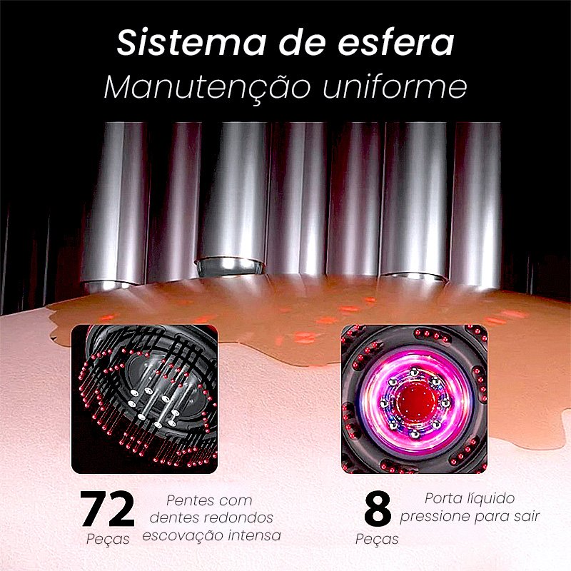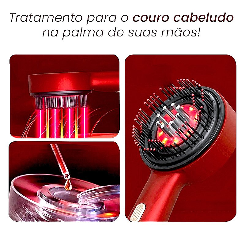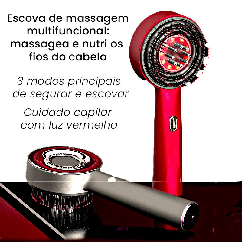Escova elétrica infravermelha 3 em 1, foi desenvolvida com tecnologia de ponta, nossa Escova elétrica infravermelha 3 em 1 oferece um sistema com três modos interconectado para o cuidado dos seus fios, combinando três benefícios essenciais em um único produto: massagem capilar, terapia de luz vermelha e aplicação precisa de produtos.