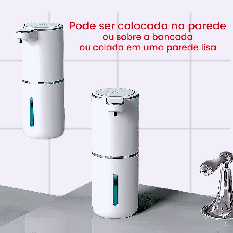 Porta sabão com sensor 350ml 4, níveis de ajuste USB com sensor de movimento líquido ou em espuma, fácil de usar não precisa fazer esforço, economiza espaço e sabão, deixa o ambiente mais bonito. Pode ser colocado na parede lisa ou em cima de uma bancada. Basta estender as mãos embaixo da saí de sabão e pronto. O sabão vai direto para sua mão sem precisar apertar nada.