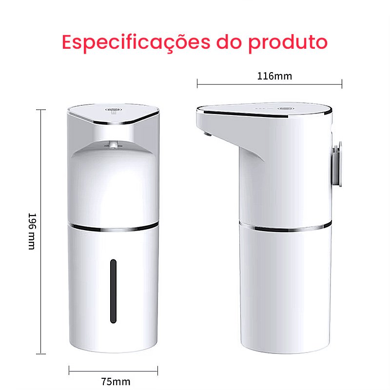 Porta sabão com sensor 350ml 4 níveis de ajuste USB